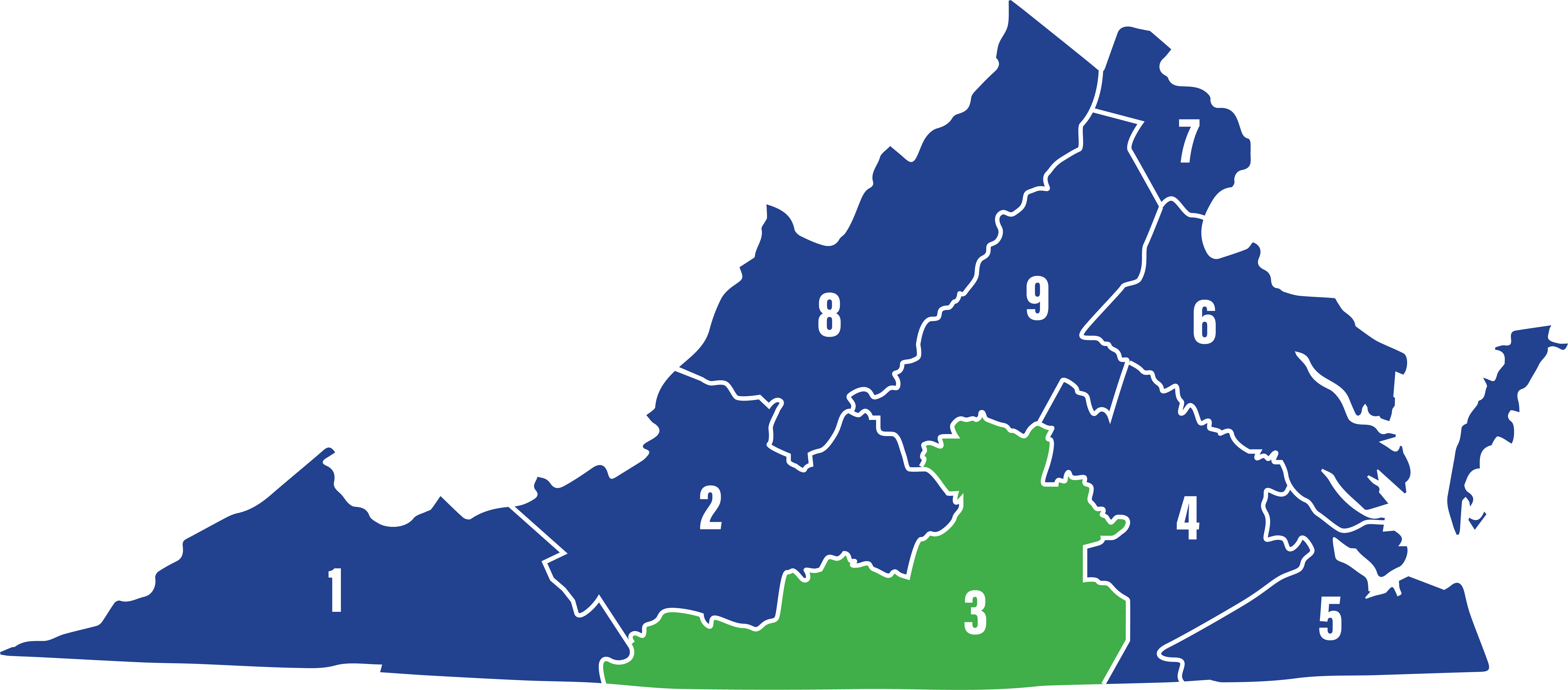 第三區包括阿米莉亞、布倫瑞克郡、白金漢、夏洛特、坎伯蘭、哈利法克斯、亨利、盧嫩堡、梅克倫堡、諾托威、帕特里克、皮茨瓦尼亞和愛德華王子,以及丹維爾和馬丁斯維爾的城市。